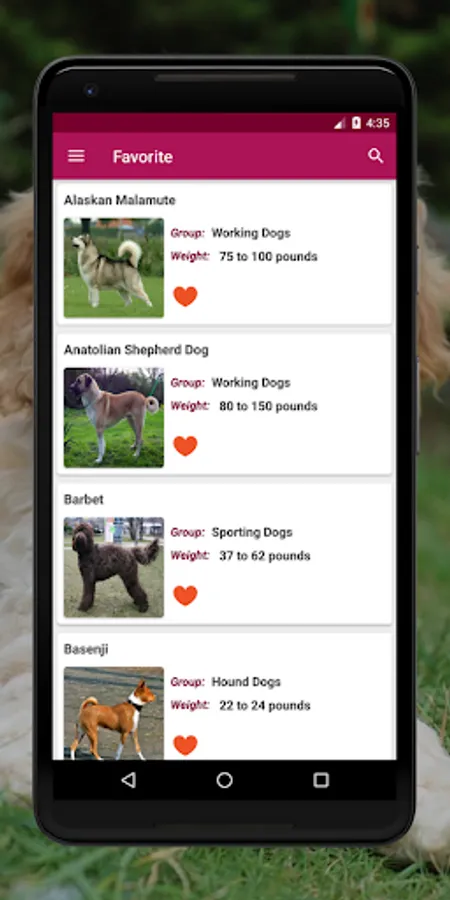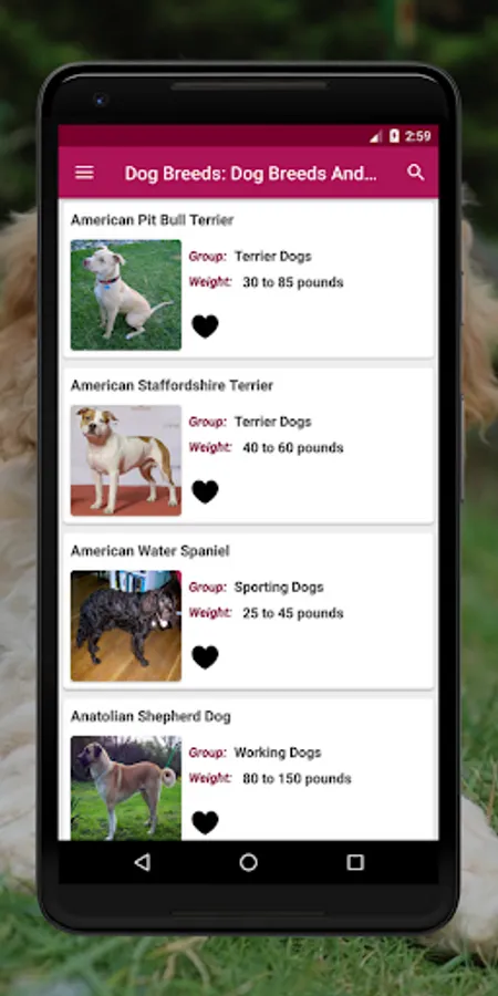All dog breed information is most accurate and these dogs breed app is very easy to use. You can make any dogs breeds as favorite and make your favorite dogs breeds with the name.