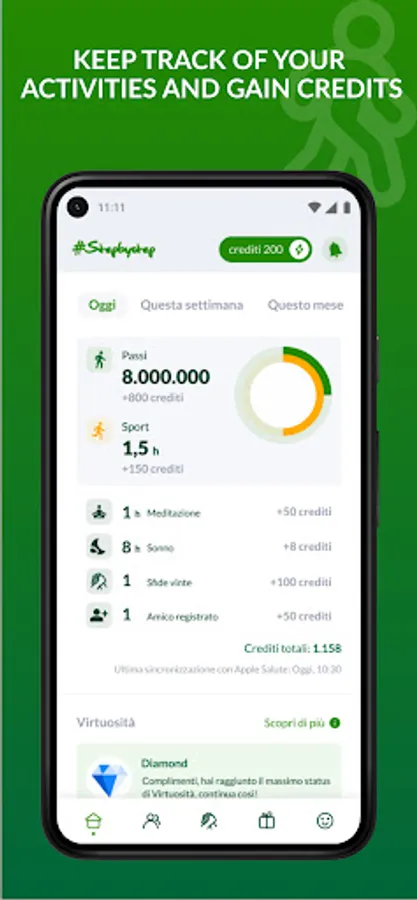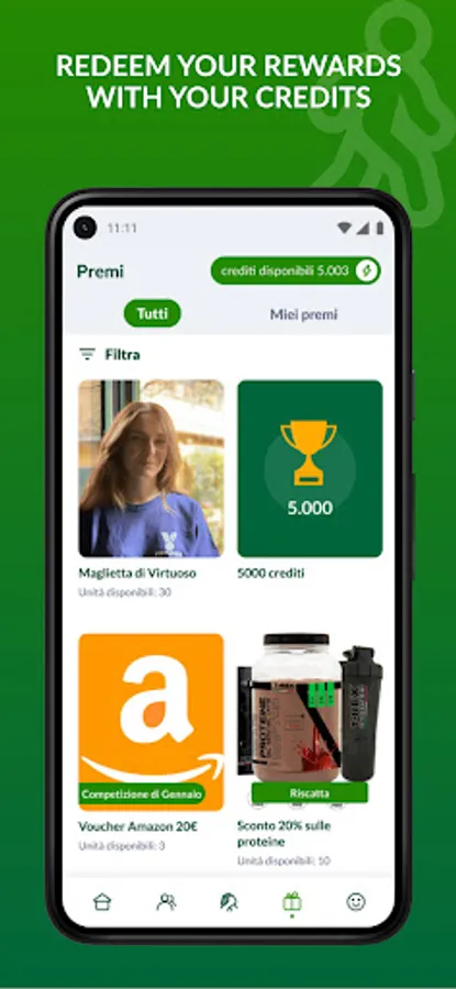 Run, steps, night rest and much more: earn daily credits thanks to your correct lifestyle to redeem exclusive prizes every day.