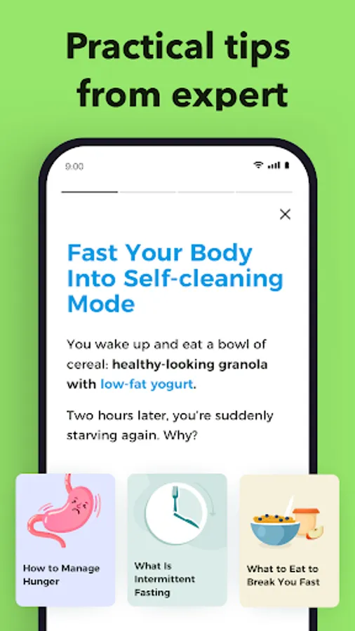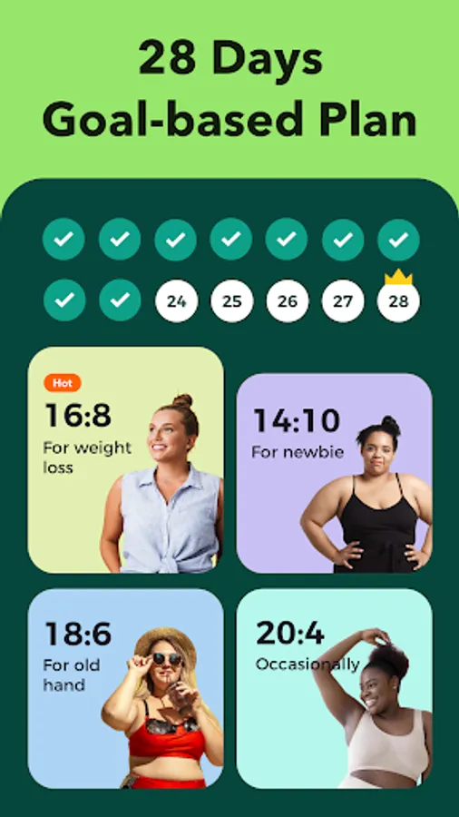 Need intermittent fasting for weight loss or body health? Our fasting app thoroughly understands your body and goals before suggesting anything, so you won't be using a “one size fits all” formula. What’s more, its fasting tracker and weight loss stories will always keep you motivated.