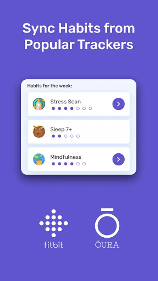 We automatically sync your devices incl. Fitbit and Oura Ring to identify your existing Healthy Habits. Everything from getting 10,000 steps and 7 hours of sleep to intermittent fasting and different kinds of workouts. We score each Habit based on frequency, with daily being the highest level. There's 16 Healthy Habits now and we keep adding more!