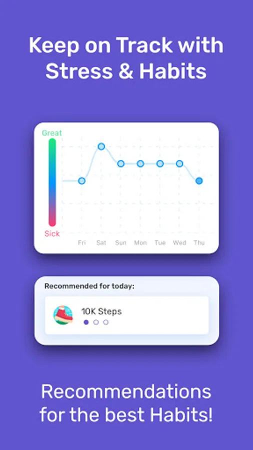 Check in every day to see an instant analysis of your stress and recovery levels! The more data you capture, the more accurate the result. We produce a simple understandable score by analyzing trends in your wellness data to find patterns indicating a good or bad stress response, using data including Resting Heart Rate ("RHR"), Heart Rate Variability ("HRV), Sleep hours, and Workout minutes.
