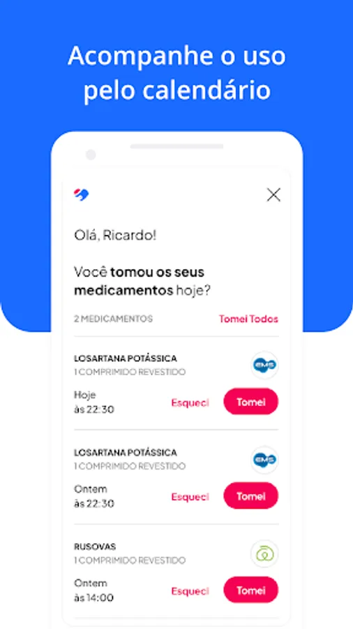 READY, NOW YOU HAVE TO TAKE MEDICATIONS ACCORDING TO MEDICAL PRESCRIPTION AND DO NOT FORGET TO BOOK IN THE APP. YOU CAN CHECK AS "TAKEN" ONE HOUR BEFORE 12 HOURS AFTER. IF YOU DO NOT CHECK IN THIS PERIOD, IT WILL BE MARKED "LOST".