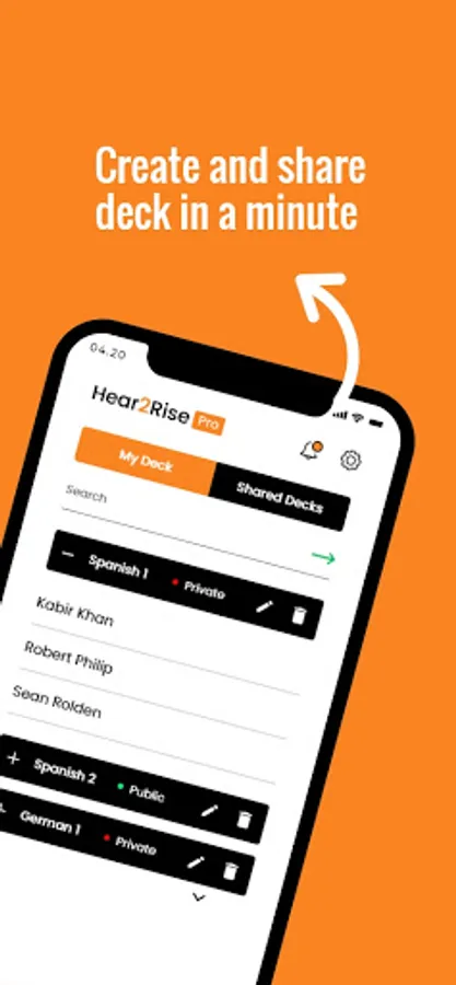 Hear2Rise is an innovative flashcard App, where simplicity is King. Unlike other Apps that incorporate images and text, Hear2Rise focuses exclusively on Audio. This simple approach yields powerful results, making the tasks of creating, using, and sharing cards simple beyond compare. Want to learn Spanish? Just dictate the Spanish words and corresponding translation into the App, one after the other, using our simple UI (user interface). Already know Spanish and want to learn French? Just do the same thing, dictate the Spanish word followed by the French translation. Want to learn (or have your child learn) the times table? Again, just dictate your “Challenge” and the corresponding “Response”, and that’s it! You could literally create 20 cards in less than a minute!