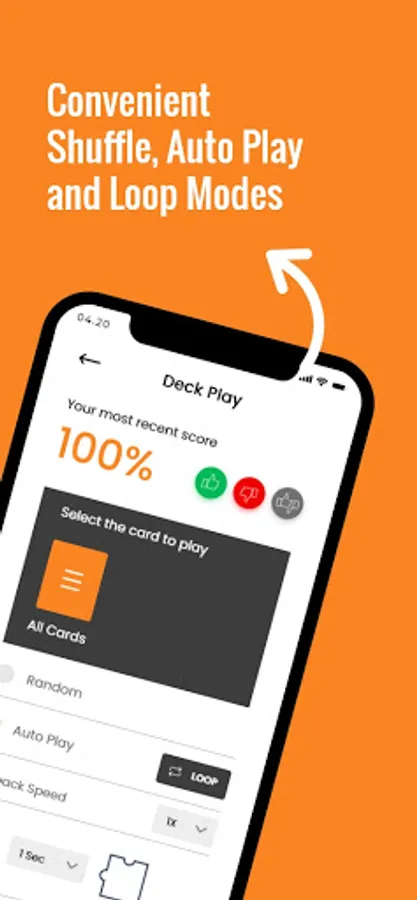 Once created, your deck is synced to the cloud, making your library available on multiple devices; you can even share your deck with friends. When doing mundane activities like taking a walk or riding a train, you can use our auto-play feature to learn your deck; you can set it to shuffle, continuously loop, and repeat each card multiple times before proceeding. Just set your preferences, press go, and let the learning begin! When reviewing cards one by one, you can mark your mastery of each card as strong, weak, or in between, and then filter your playback by its’ marked mastery level.