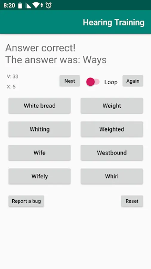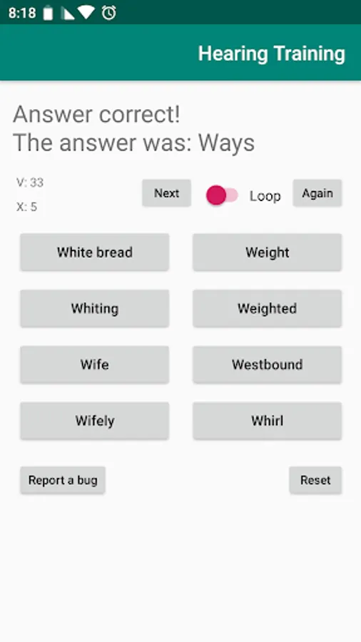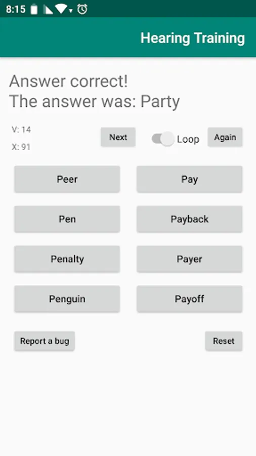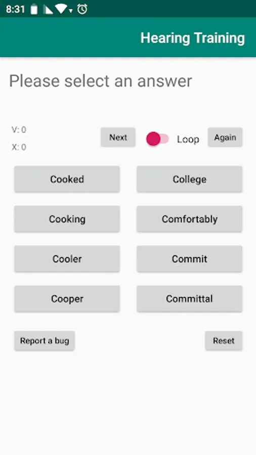 This game was created specifically for hearing impaired individuals who recently received a cochlear implant or recently were fitted with hearing aids. The app will enunciate English words and you must select the correct word that you heard.