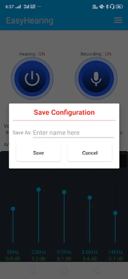 EasyHearing - Hearing Aid app gives you a feature of Save configuration and loads them whenever you want.
