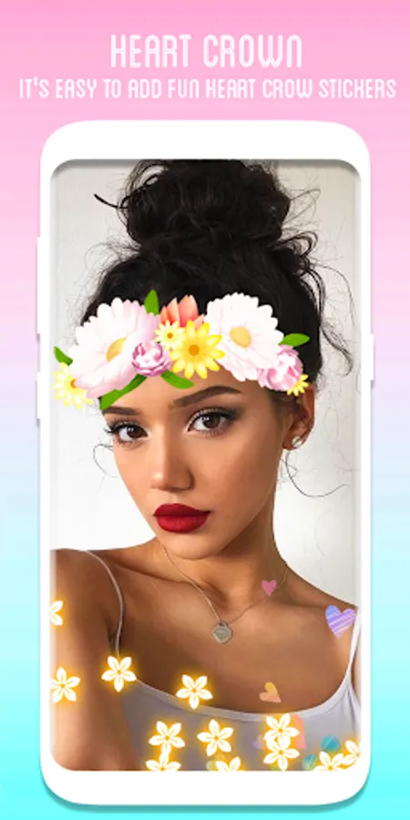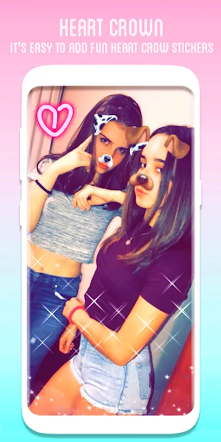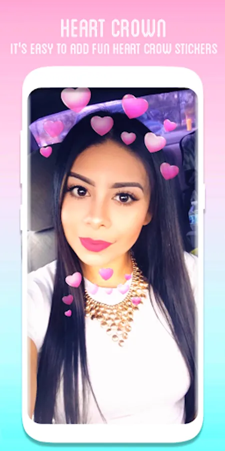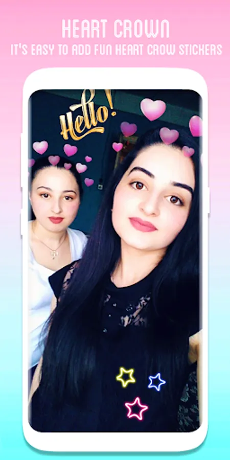 It's also a powerful camera Heart Crown face camera that helps beautify and modify your photos in various aspect, and even turns your photos into amazing Stickers art.