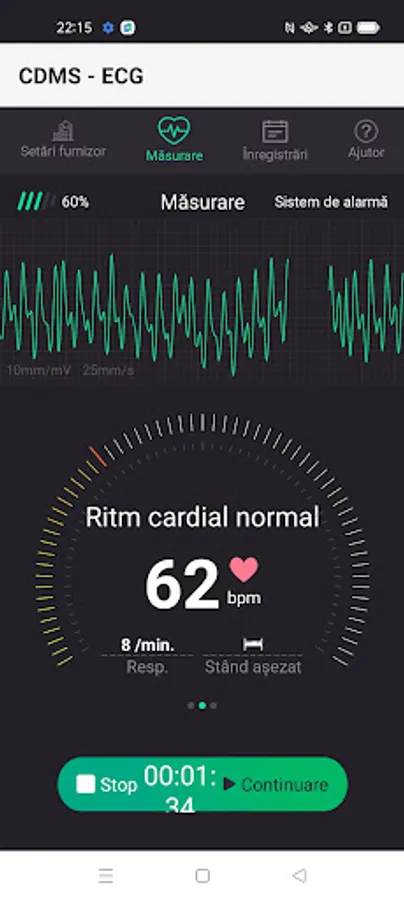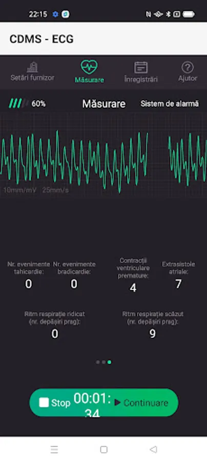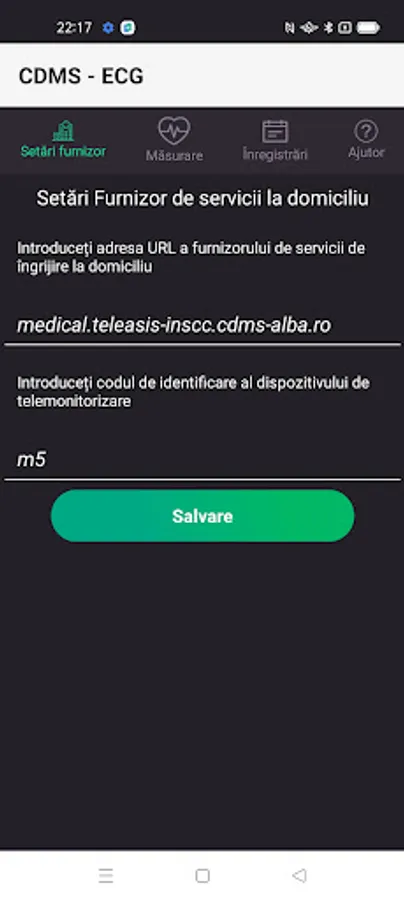 ECG monitoring application using the Mintti HeartBook device integrated in the CDMS platform (details: https://homeassis.ro/)