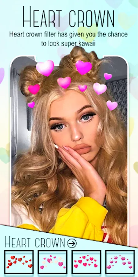 Heart crown photo editor is one of the best apps when it comes to decorating your photos in the classiest ways, heart crown camera gives you access to crown yourself as a princess crown, diamond crown, flower crown and so forth. Heart crown editor has countless stickers that can be added on your photos as well as filters and cliparts, also you will have a great background of captions and texts for the sake of making your picture as charming as it should be.