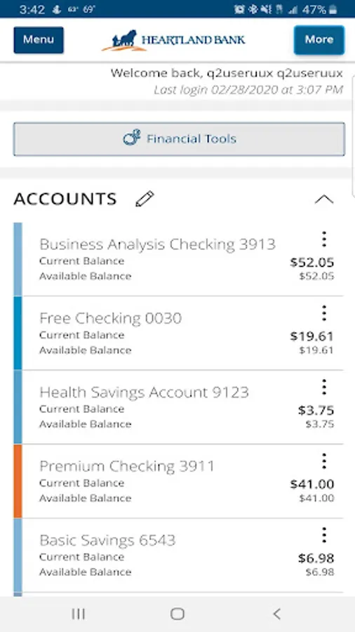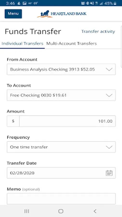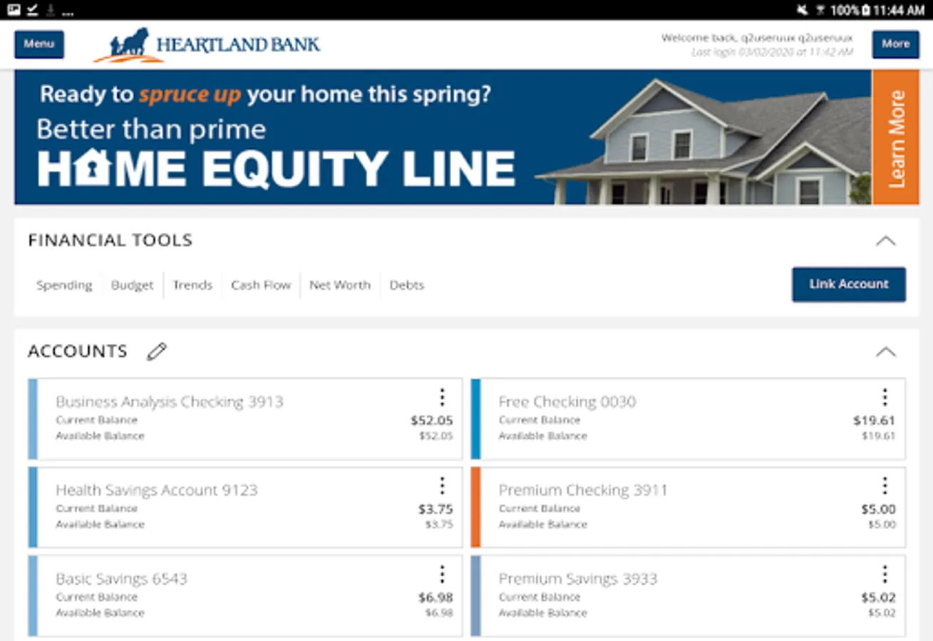 Heartland Bank’s Mobile Banking App is a banking application that allows Heartland’s clients to perform their banking transactions, review their account history and access various financial tools just as they would from their desktop computer. Among other features, clients can pay bills, deposit checks, pay other people, review accounts, check balances and process account transfers.
