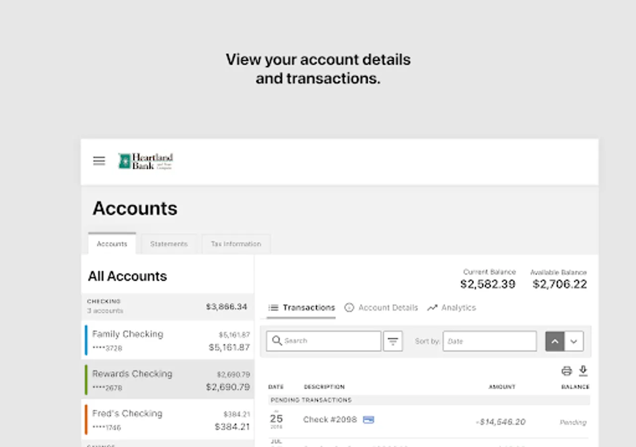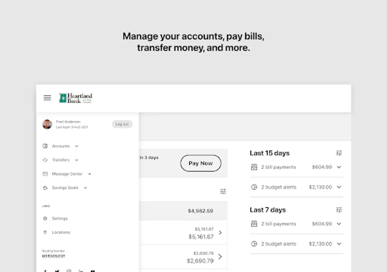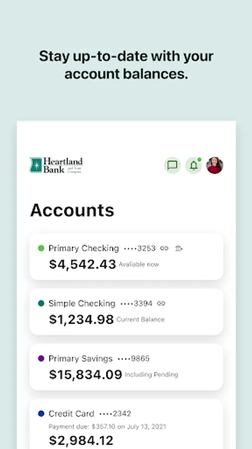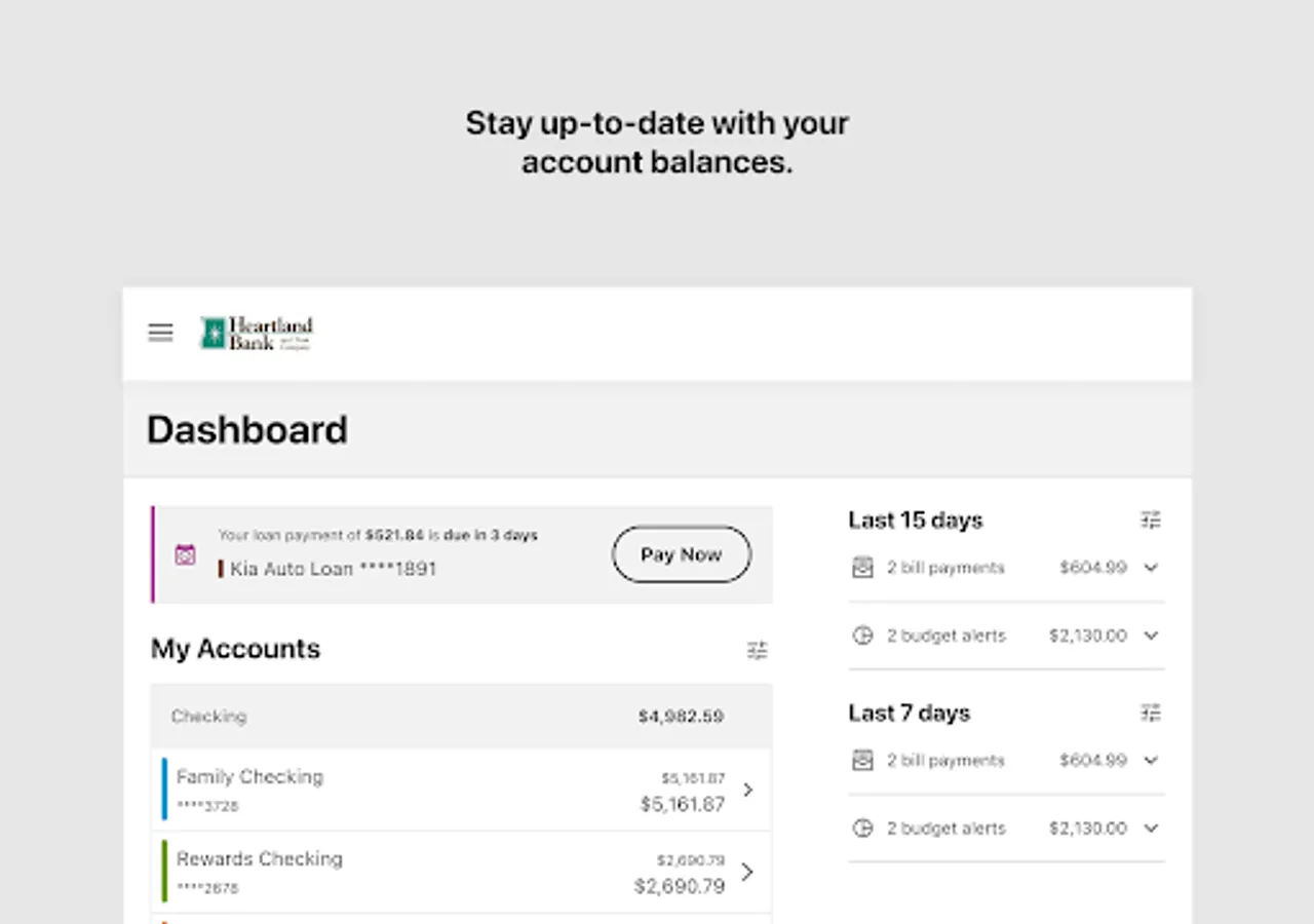 Conveniently connect to your Heartland Bank accounts to check balances, pay bills, deposit checks, transfer money, and more - anytime, anywhere!