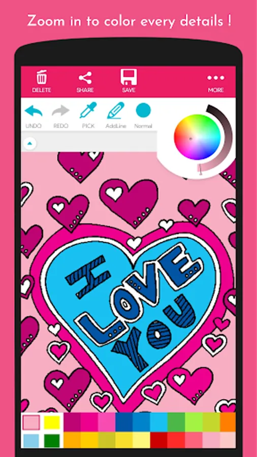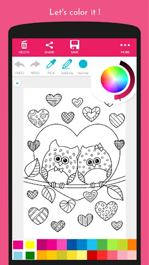 So, what are you waiting for? Download and install our lovely heart coloring book. Take a break and enjoy our Romantic Coloring Book. Choose the picture of heart you like and start coloring in one tap. You will be amazed how something so simple can bring so much relief and fun!