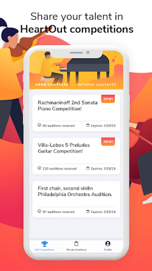 HeartOut provides a platform for performing arts organizations to listen to recordings of their applicants in a "live" setting.