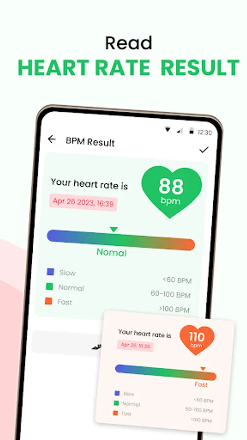 Let's check your heart rate anytime, anywhere with the app - at your home or office - when you wake up, relax, before and after exercise. Track your previous record and keep yourself healthy and fit.