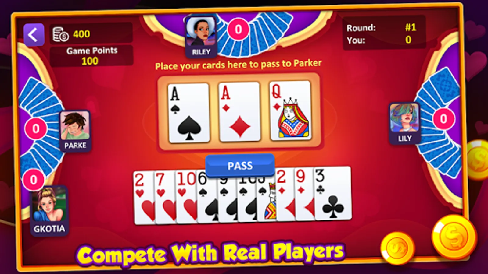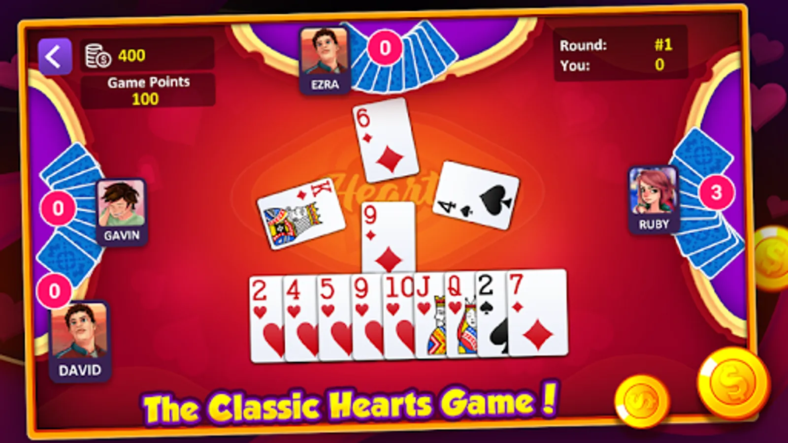 Enjoy one of the most famous trick-taking card games – Hearts.