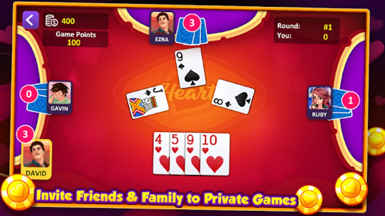 Play with your Facebook friends, with millions of Hearts players around the world.