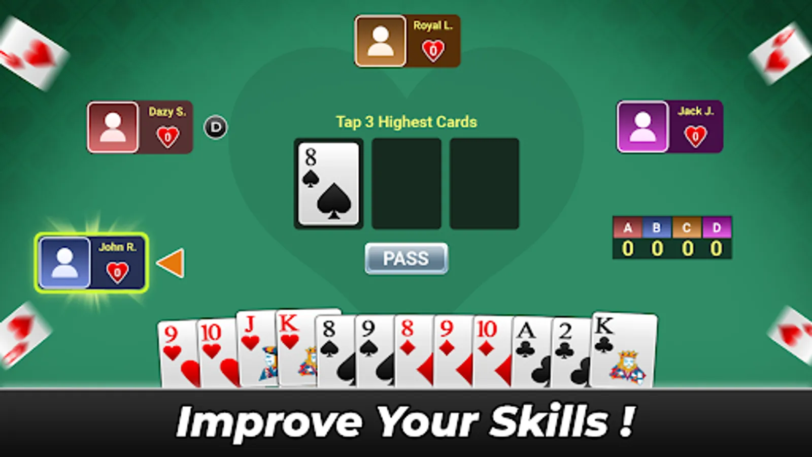 Hearts free classic card game is a competitive card game. You can play without internet connection with free Hearts offline. Beat the smart intelligence AI of Hearts plus!!