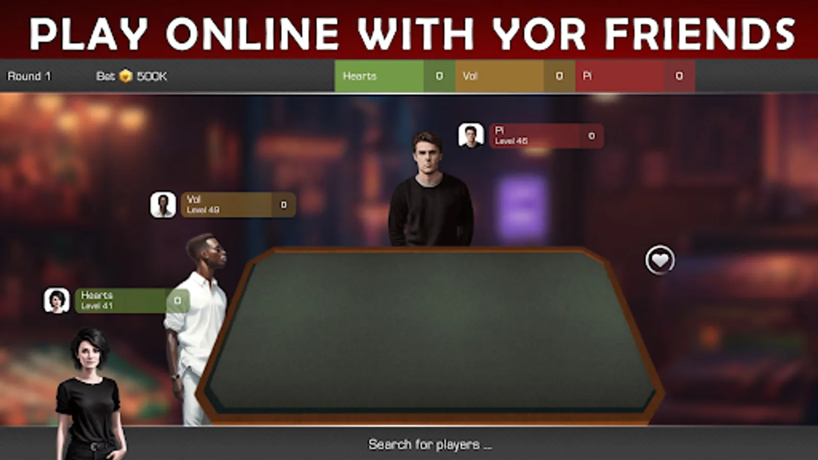 Hearts Online - Card Games is the ultimate destination for multiplayer games with friends . Our classic card games and online card games offer something for everyone , and with our easy-to-use platform , you'll be up and playing in no time . So what are you waiting for ? Download Hearts Online - Card Games today and start playing !