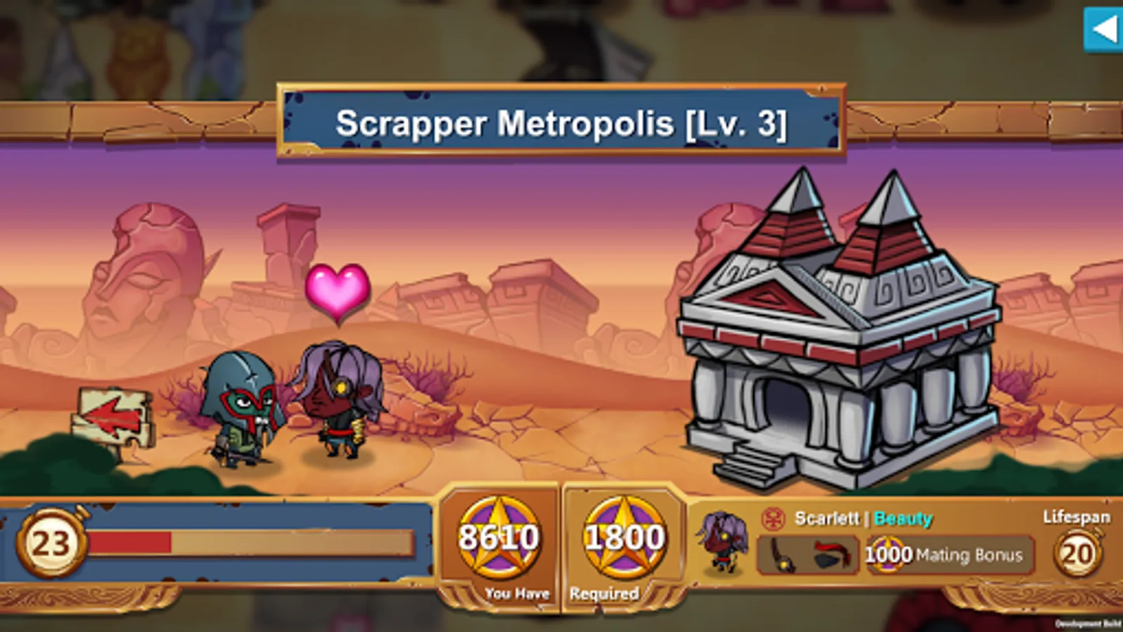 Construct any of 19 legacy lasting buildings next to towns to give future generations useful resources, powerful new abilities, and more attractive mates! Experiment with different combinations to craft amazing secret town cultures, like the Castle, Dark Cathedral, or Fortress!