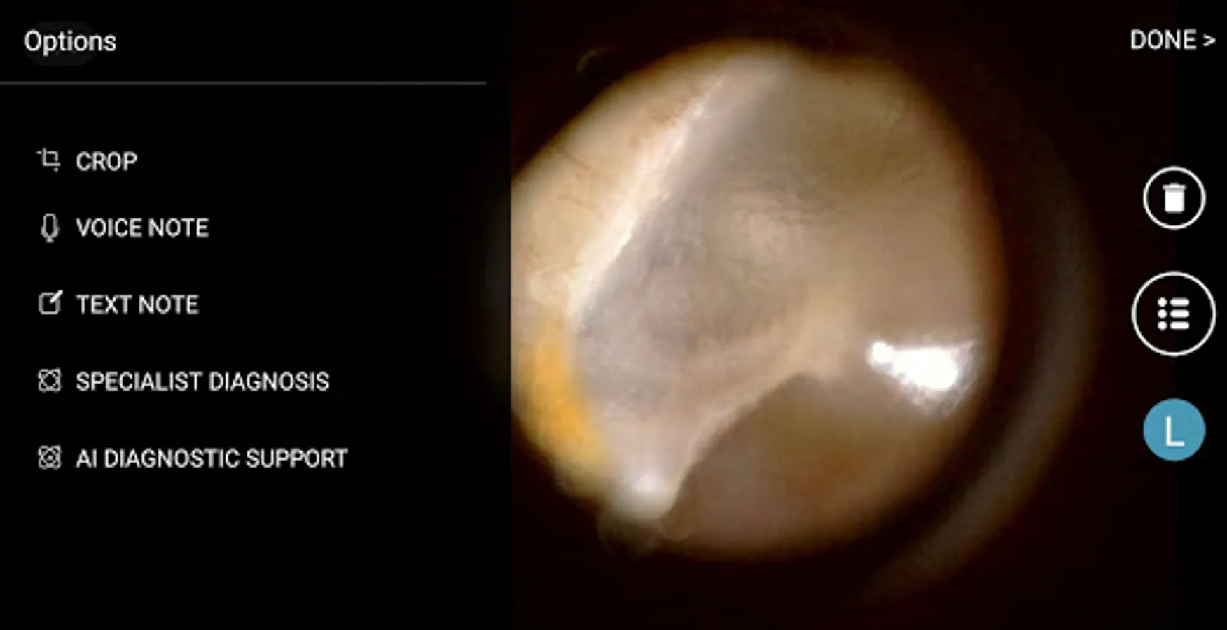 A smartphone otoscope application for use with the hearXGroup smartphone otoscope.