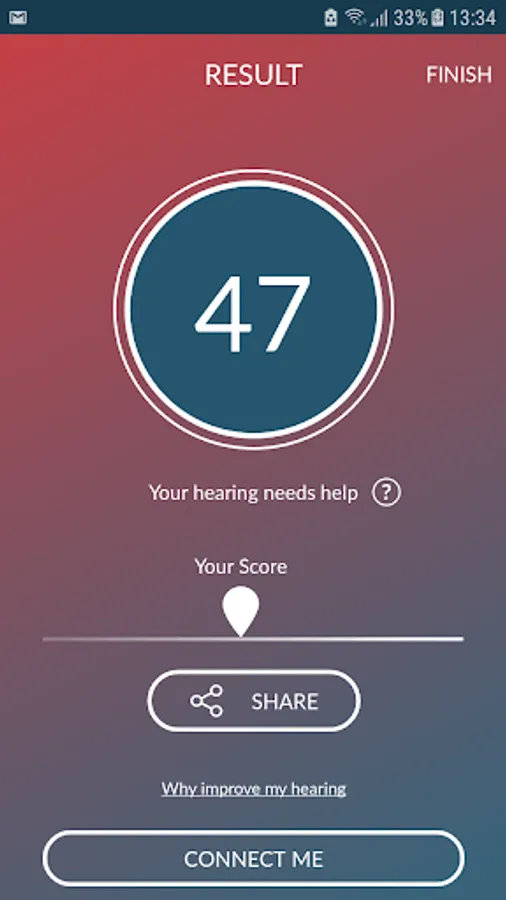 Based on the person’s response, the app automatically generates a hearing score that indicates whether there may be a possible hearing loss.