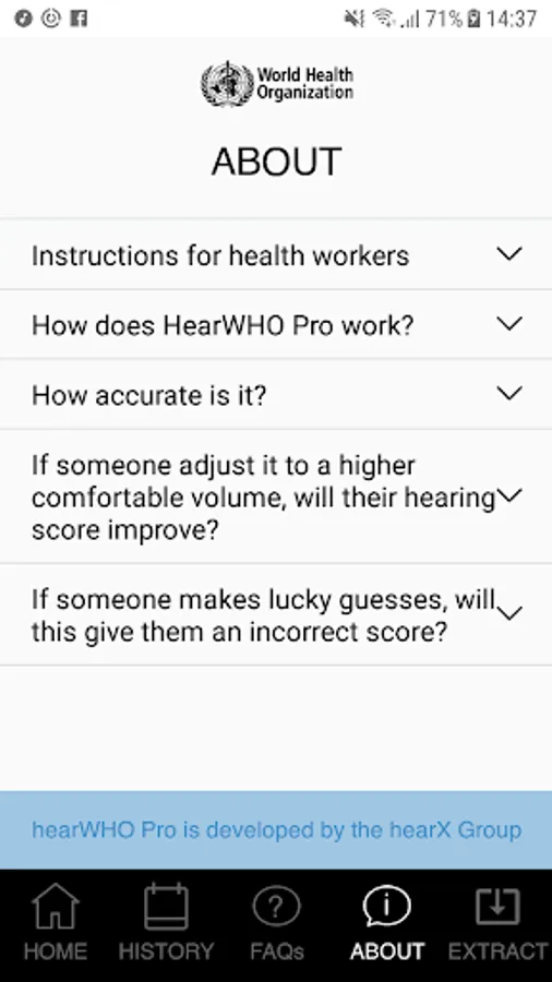 4. The WHO and hearX Group will not be held responsible or liable for any results that are incorrect or for your use of the application.