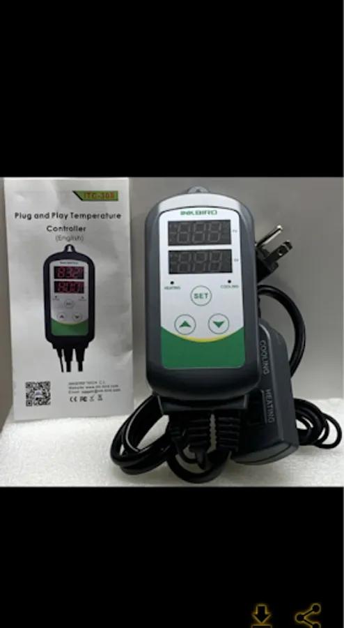 The thermostat measures 5.3" x 3.3" x 2.5" with a 5-year warranty. It can be used in attics, basements, garages, laundry rooms, bakeries, breeding rooms, grow rooms, grow barns, heatermate thermostat guide