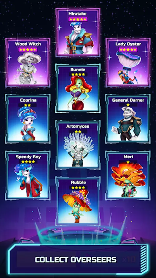 Your cute and loyal shrooms are a bit simple-minded and lazy. To make the work without break you need various overseers. Get them from expeditions and summon them from a mysterious space wormhole! Then feed then and merge them to make them stronger! They will repay you helping as much as they can. Did we mention they also look surprisingly nice for sentient mushrooms? Ah, and they also help each other but you need to install the game to find all the details.