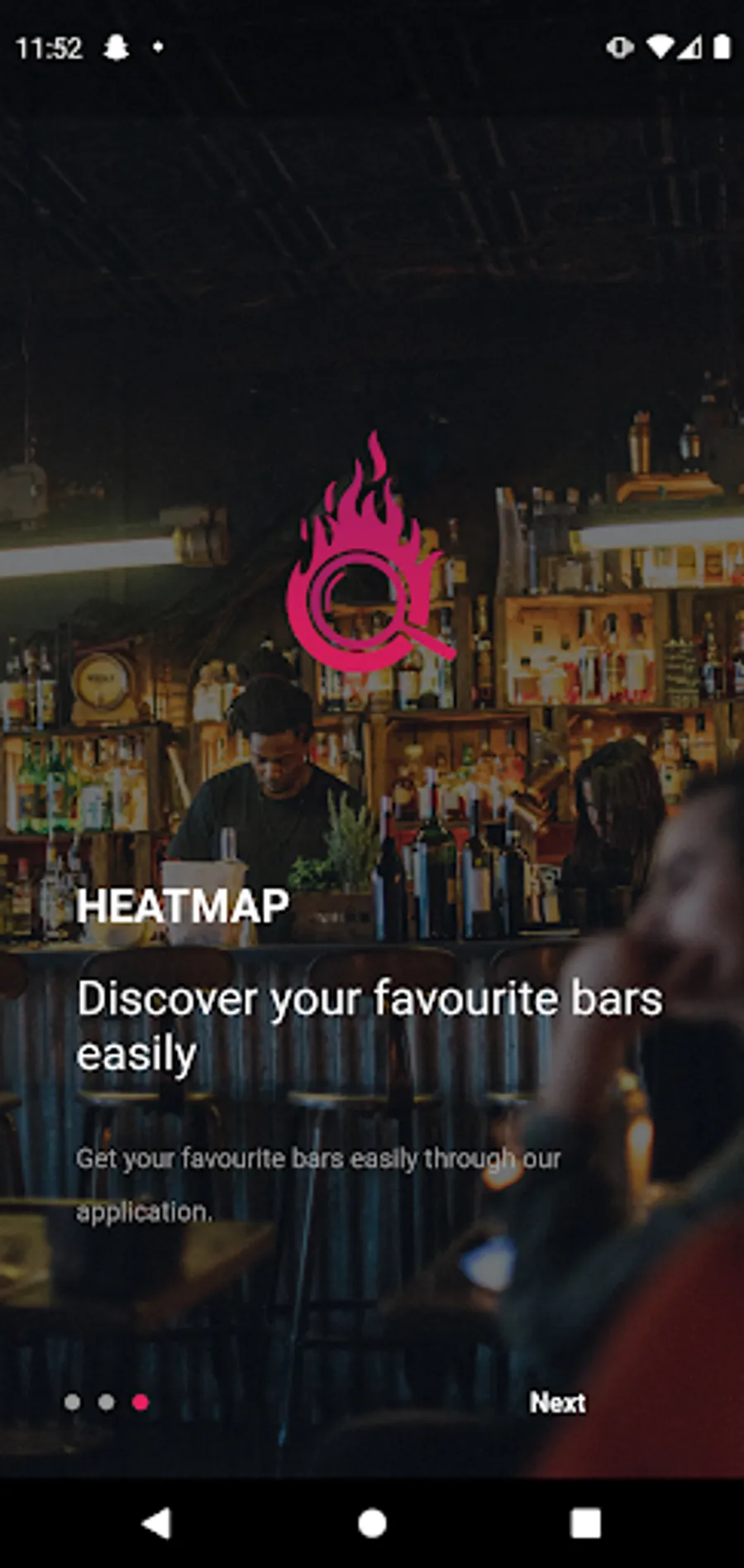 This app uses your location to determine restaurant pac and promotions near you. A heatmap is shown at bars and restaurants which have customers. The size of the heatmap is determined according to its neighbouring restaurants and bars