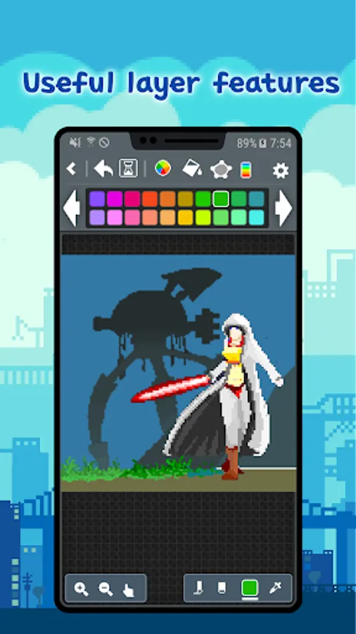 ‘Pixel Art paint pro’ is intuitive, simple and easy to draw pixel, dot, 8bit pic sprite.