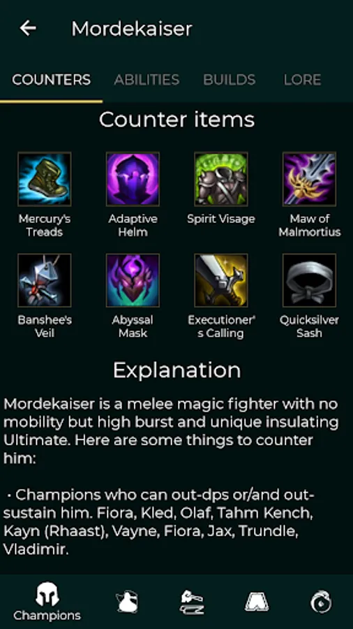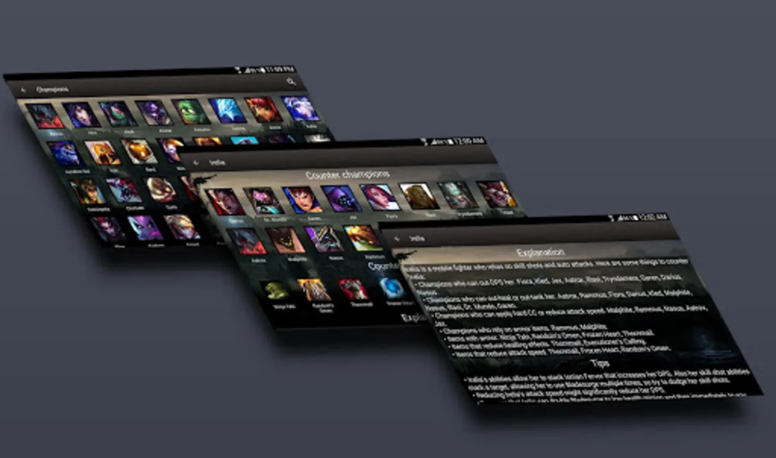 "Summoner Adviser: Counter picks, tips and builders" can help you to better understand champion's game mechanic, how to counter that and how to properly use it to interact with your team.