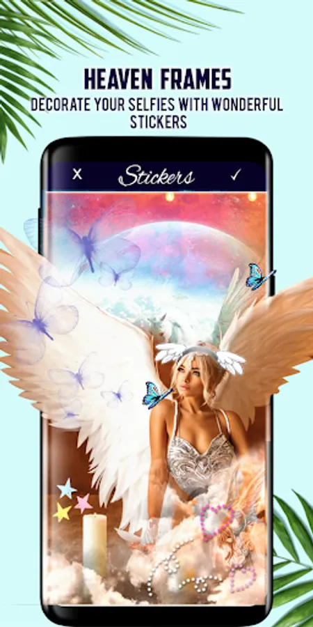 We all have inside our brain an illustrative imagination about Heaven and its fabulous features, how do you think Heaven frame would look on your pictures? Surely it would look totally amazing ,actually Heaven Frame for pic photo editor will help you to awake your spiritual inner and bring the aesthetic feeling of heaven to your picture with one simple click , also this photo editor recommend for you a wide range of different sort of frames ,such as condolence photo frame with a sparkly candle, girly frames , death anniversary frames , and also angel wings frame, moreover this advanced photo editor gives you the chance to try some cool stickers on your pictures for instance : Love frame sticker , flower crown frame sticker, catchy stickers of many art effects , and don’t forget to add as well a lot of cute animal stickers.
