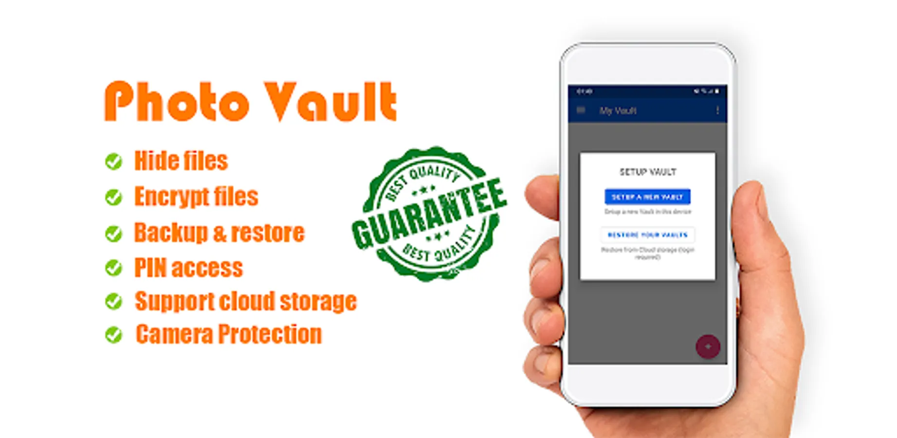 Photo Vault is an app developed for secure app that lets you protect any private folder on your Android smartphone quickly and easily. With Photo Vault, you can hide, encrypt and create a PIN or password to stand between your personal files and prying eyes.