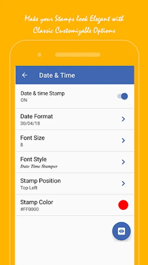 ◇ Time stamp photos with a Date stamp captured from your Camera with 60+ Font Styles, Size, Format & Color Options ✌