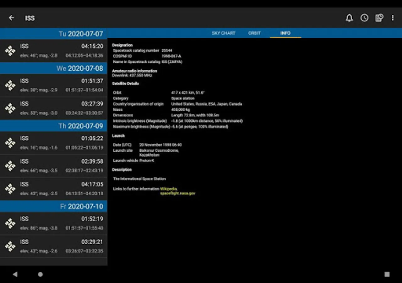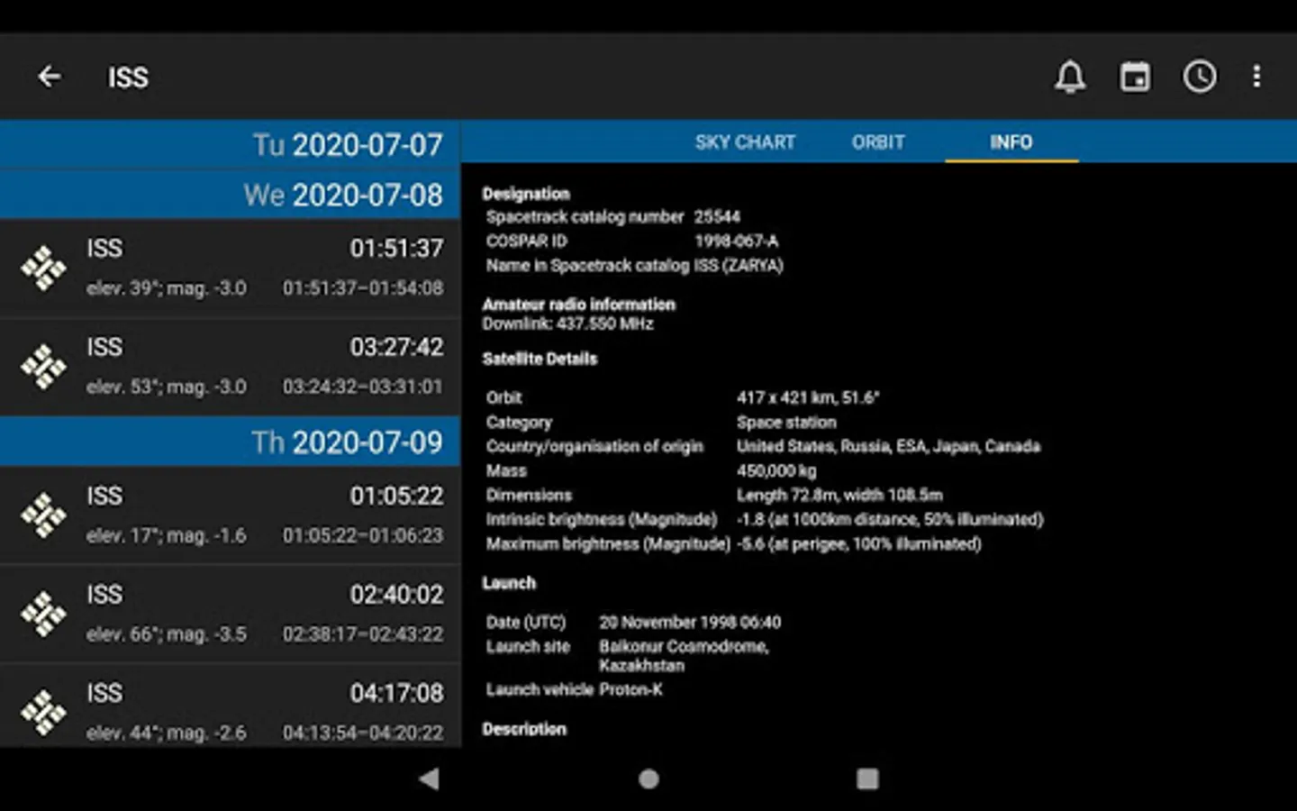 When can I see the ISS? What's that light in the sky? The official Heavens-Above app provides you with precise pass predictions for the ISS, visible satellites and radio satellites. Main features include:
