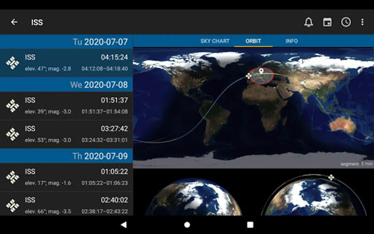 Get precise predictions for passes of the International Space Station (ISS) and most visible satellites.
