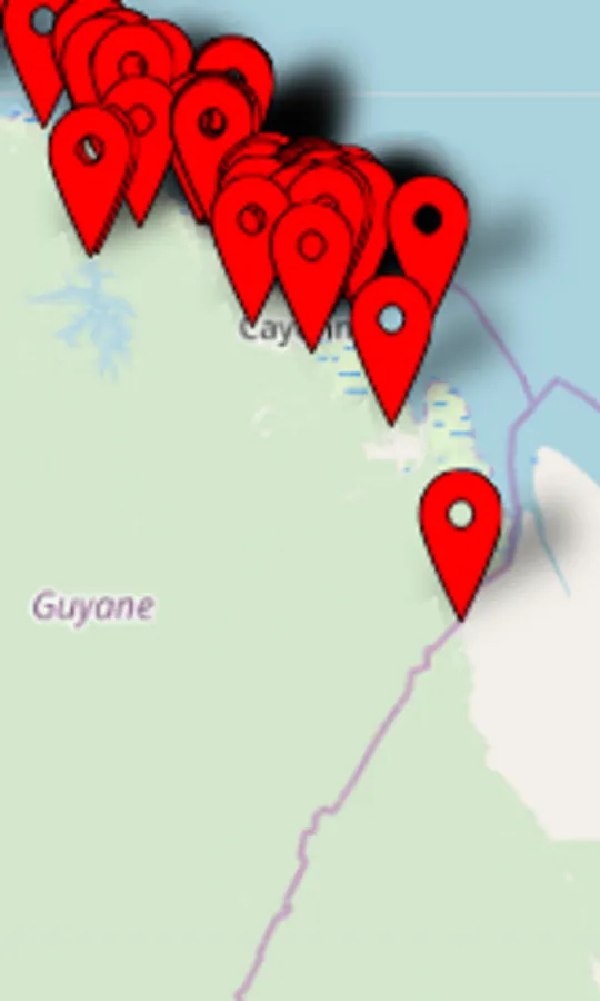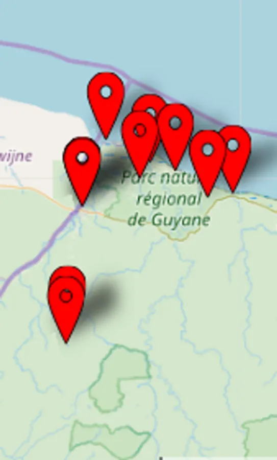 With this map of Guyana (973) geolocate access to cultural sites,