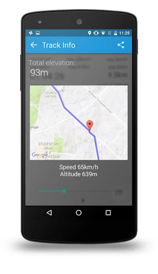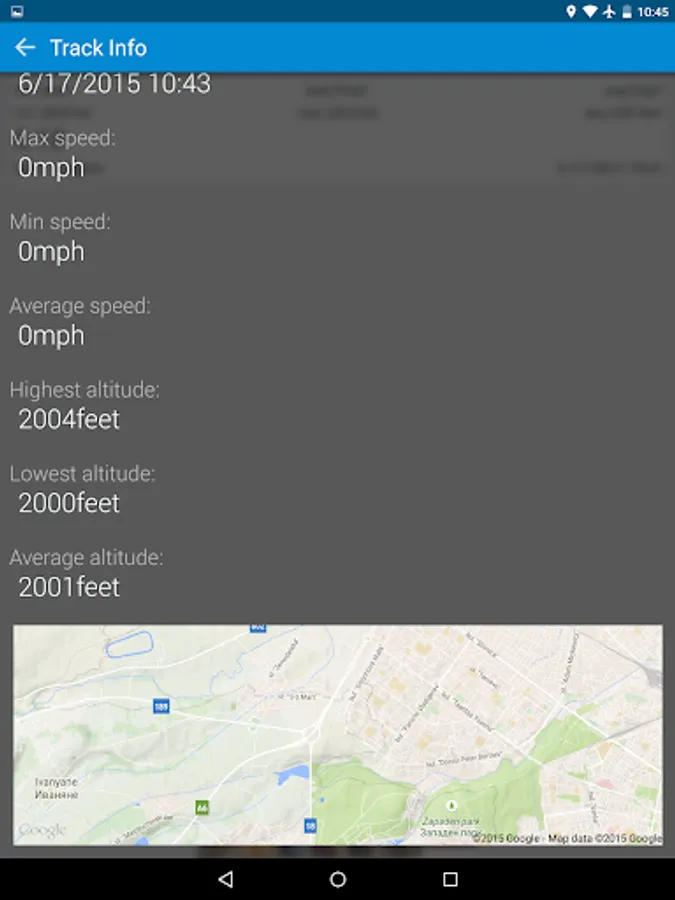 GPS Tracker also shows your maximum, minimum and average altitude. GPS Tracker shows you total elevation during the track. In GPS Tracker you can check the duration of your tracks and where they were tracked.