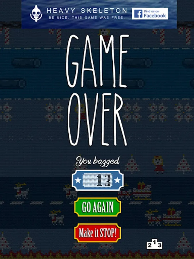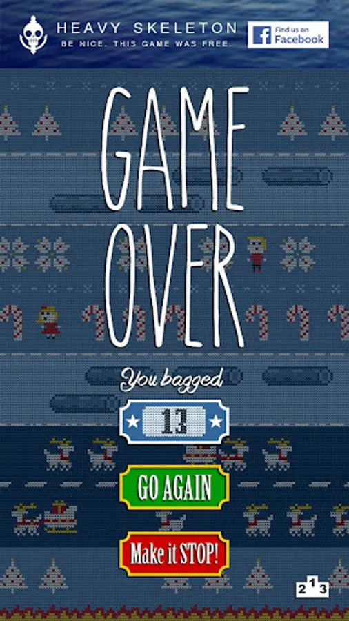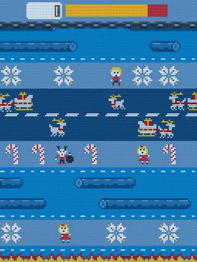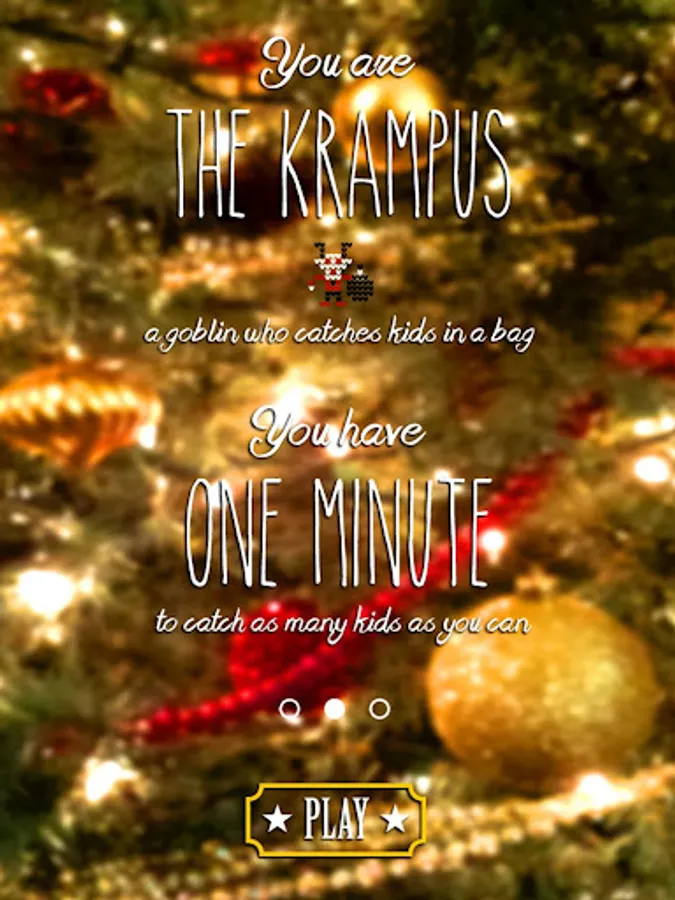 In MERRY KRAMPUS you don the horns of ol' Krampus himself. Your goal is simple: Catch as many children as you can in one minute. Dodge running reindeer, ride floating logs, and don't fall in the water!
