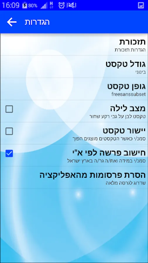 The app is also tailored for studying Torah reading (reading correction), allowing for easy concealment and presentation of the score and tastes.