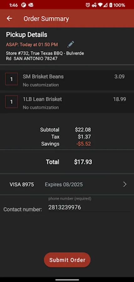 Spanish: Puedes ordenar True Texas BBQ desde tu teléfono o tablet. Personalizar su BBQ como lo quieras y guardar sus ordenes favoritos para ordenes futuros. Agregar elementos desde todo el menú – acompañamientos sabrosos, postres deliciosos y sodas o té. Nosotros le mantendremos fijado en el estado de tu pedido y hacerle saber cuando está listo para la recolección.