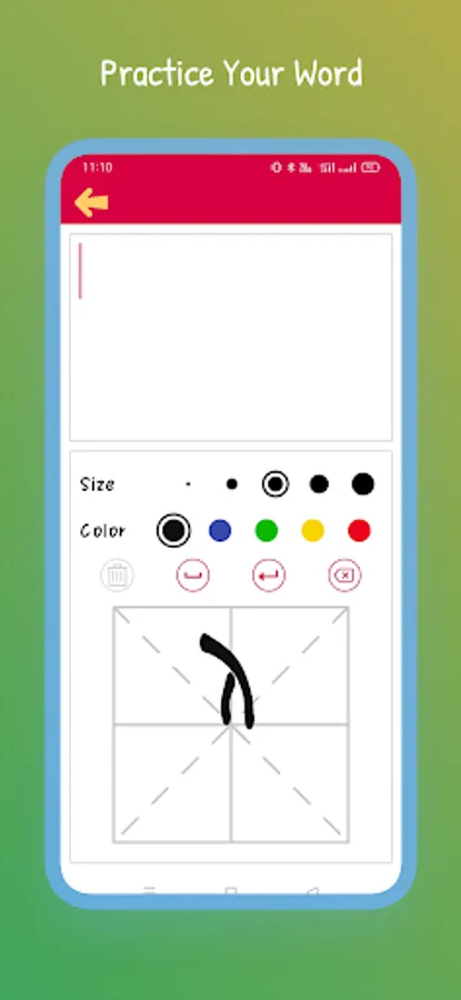 The writing section of the learn Hebrew alphabet has a space, next line, erasing, and deleting option. Users can choose any option according to their needs. This section of learning the Hebrew alphabet has some primary colors and different-sized cursors for juicing it up a little!!