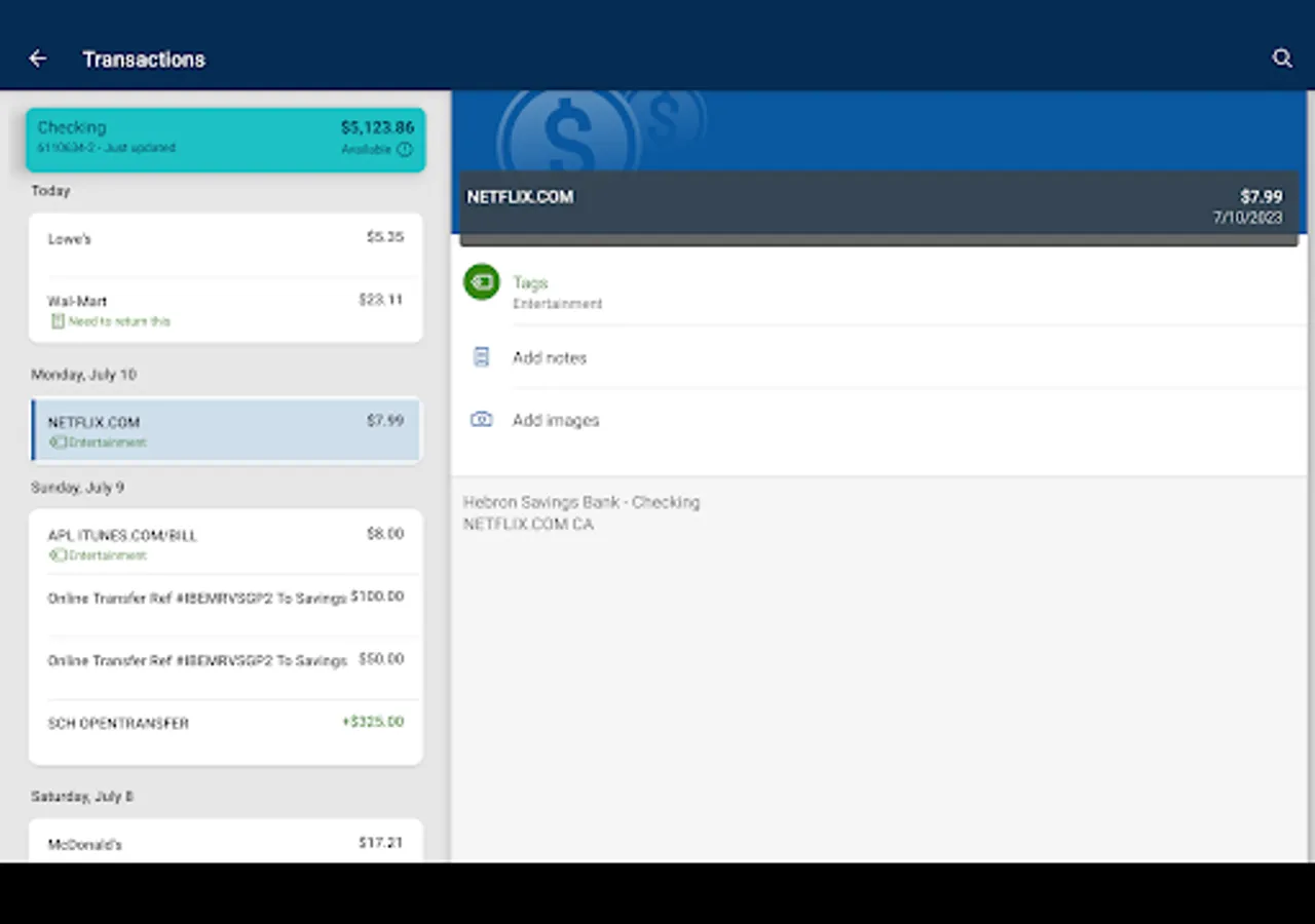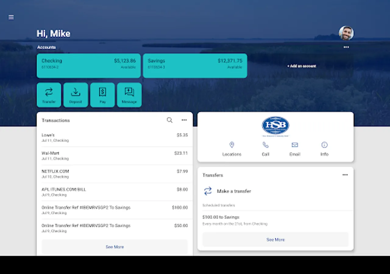 Hebron Savings Bank Mobile Banking supports all account types including checking, certificates-of-deposits, money markets, loans, and lines-of-credit.