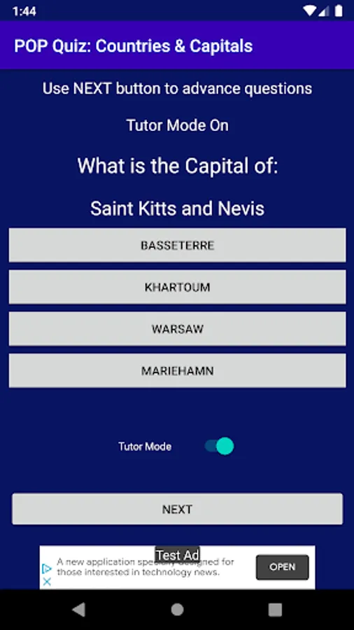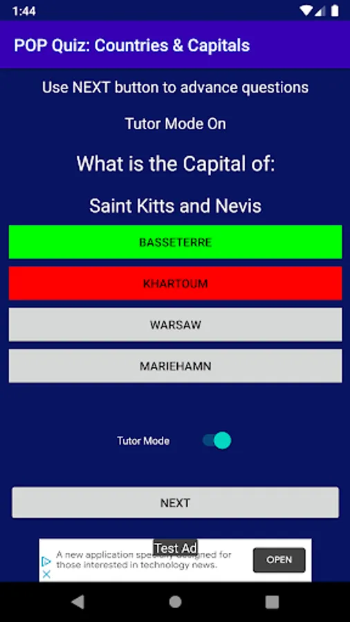 You may, however, decide to use the Tutor mode to learn before enabling the Test mode - which tests your knowledge.