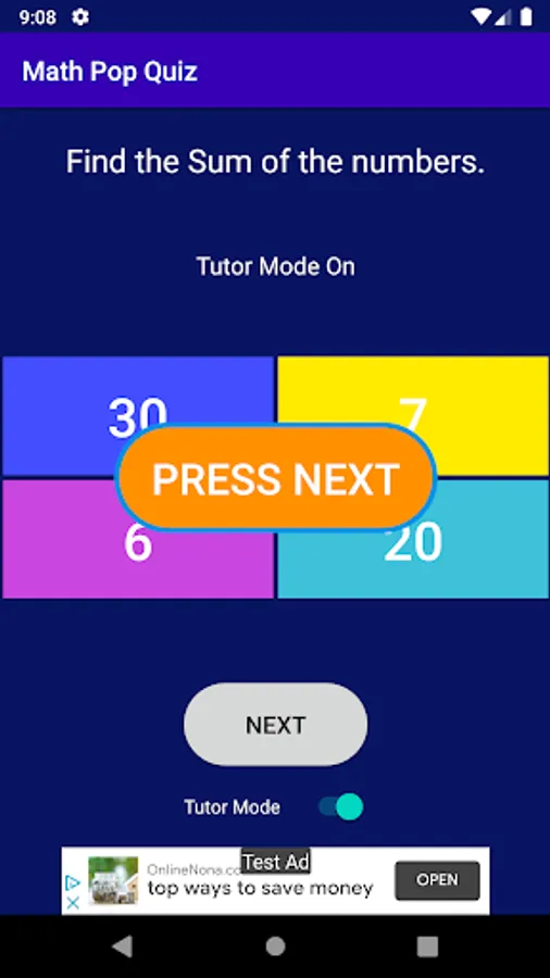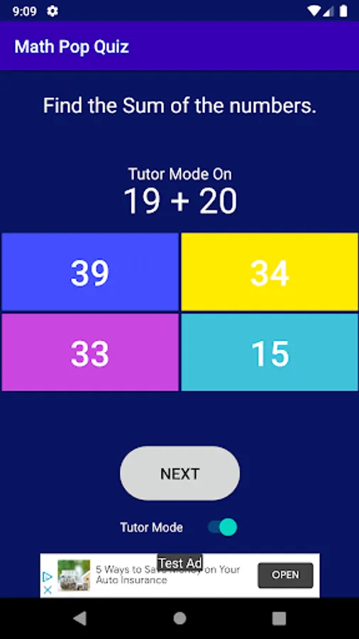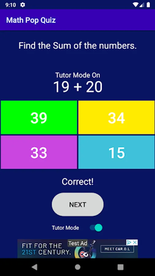 The Tutor Mode is not timed and allows you enough time to learn solve the Math problem helping you build your mental muscle in the process. When you feel comfortable with the problems, you will may switch to the test mode to test your new ability.