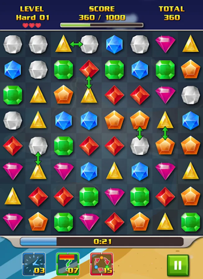 * Reshuffle power-up - Change positions of all the diamonds on the dash.