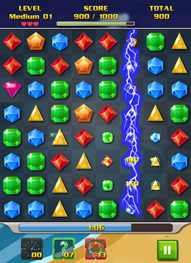 The candy on the top is, that this deluxe jewels game is free! You can crash the gems as long as you want, until you become a hero legend.