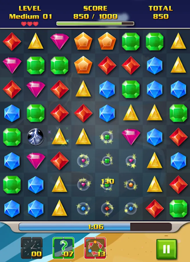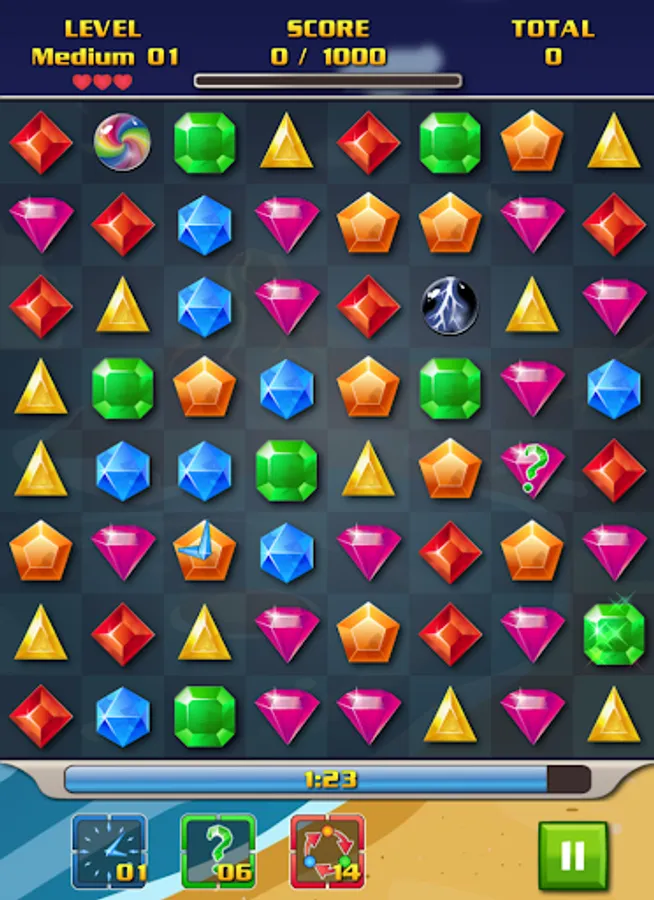 * Magic jewels - Match a magic jewel to crush all jewels around it