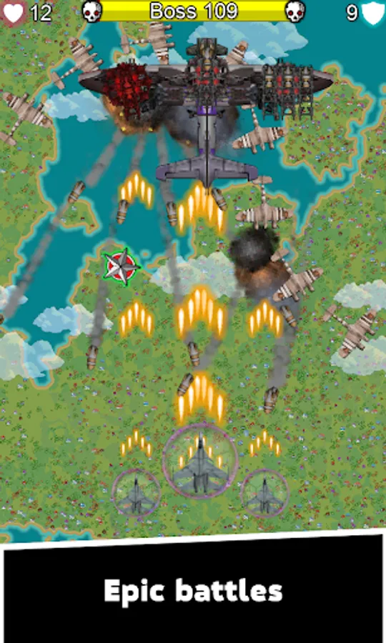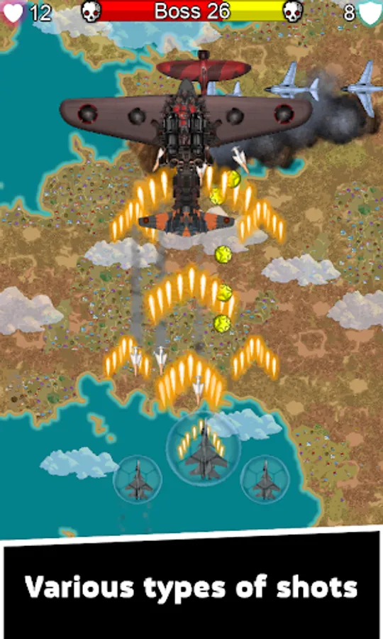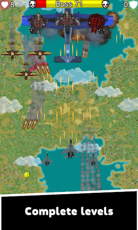 With its wide variety of planes, hundreds of challenging levels, and epic final bosses, "Aircraft Wargame 1" guarantees hours of fun and excitement for fans of airplane war games. Improve your skills, unlock new planes, and level up to become the bravest and most skilled pilot out there.