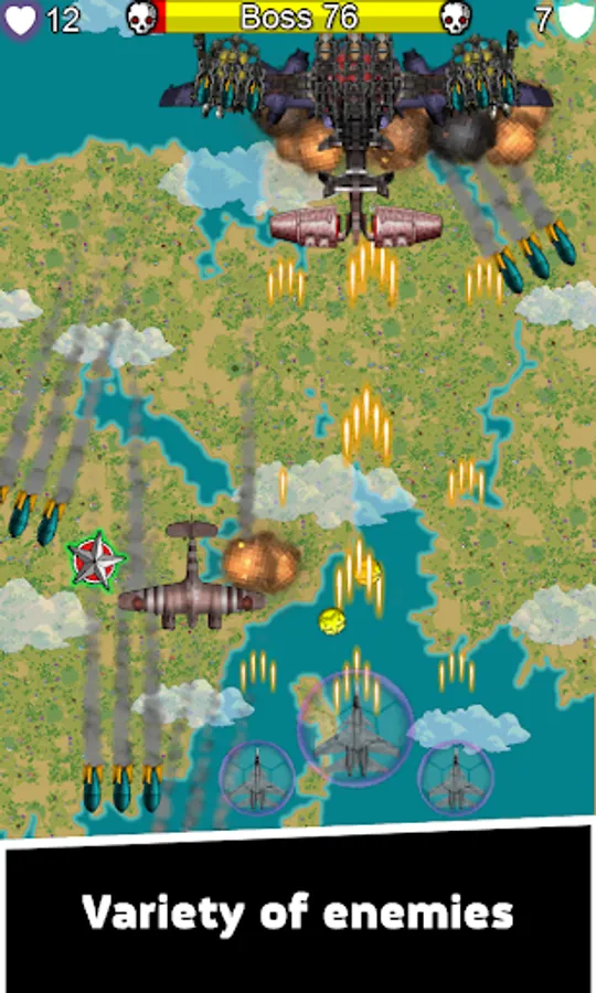 With dozens of different enemies, each with their own attack styles and movement patterns, "Aircraft Wargame 1" will keep you on your toes and in constant action. Stay vigilant against enemy assaults and strategically use your weapons and special powers to defeat your adversaries. Victory lies in your hands!
